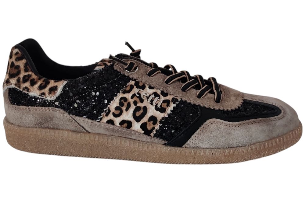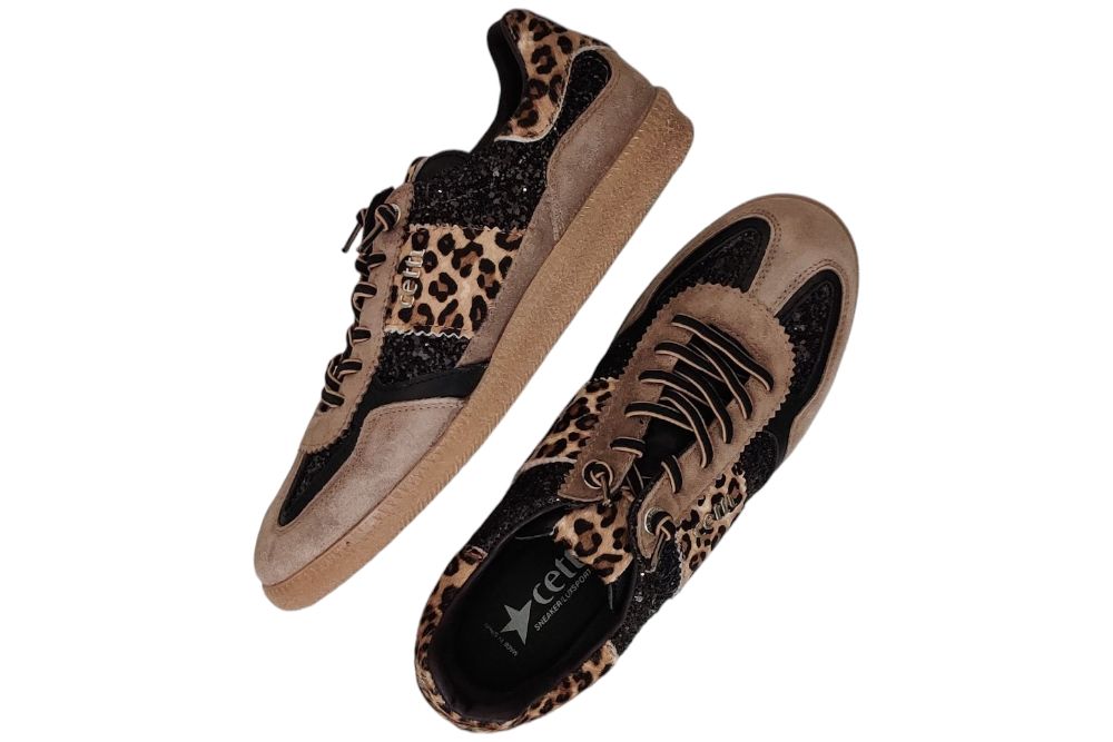 Dames sneaker van Cetti . Sneaker met losse binnenzool.Super comfortabel. Materiaal: suede combi. Voering: leer. deels textiel. Kleur: bruin/zwart. Zool: rubber. Hakhoogte: ca 3 cm.