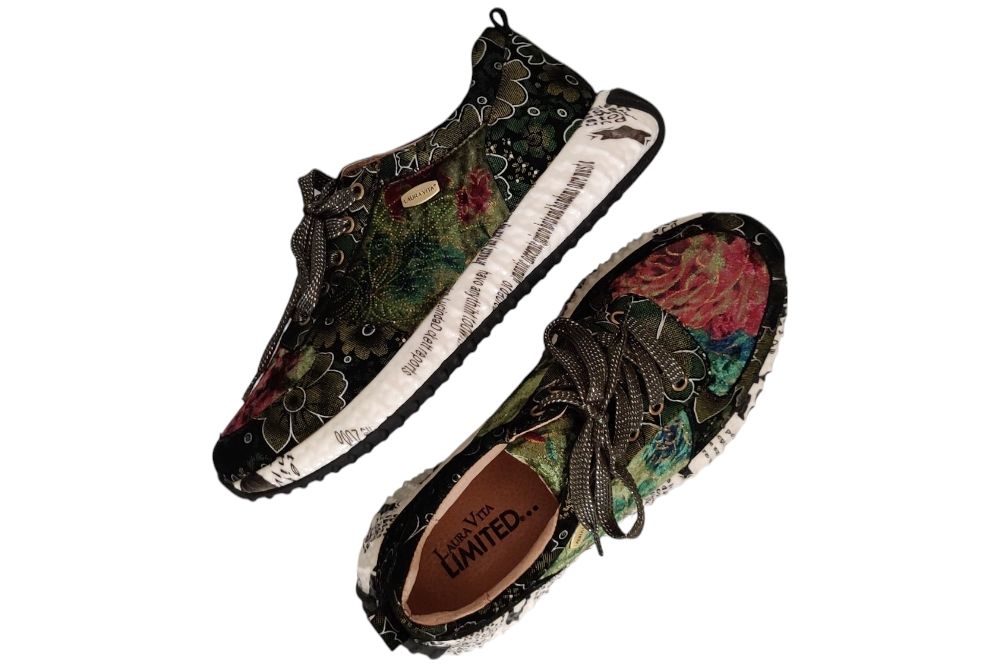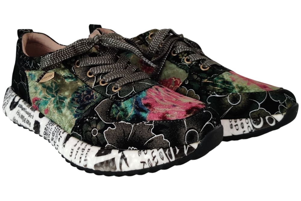 Dames sneaker van Laura Vita. Sneaker in verschillende materialen met uitneembaar voetbed. Materiaal: Leer combi. Voering: deels leer. deels textiel. Kleur: multi color. Zool: rubber. Hakhoogte: ca 4 cm.