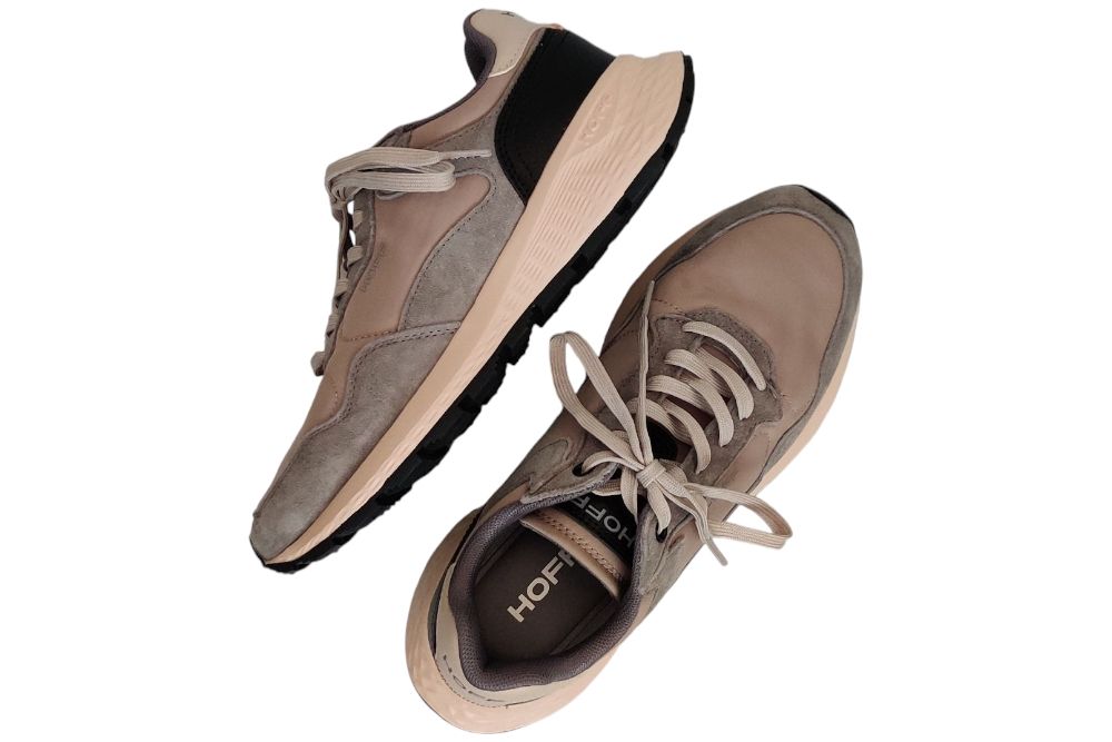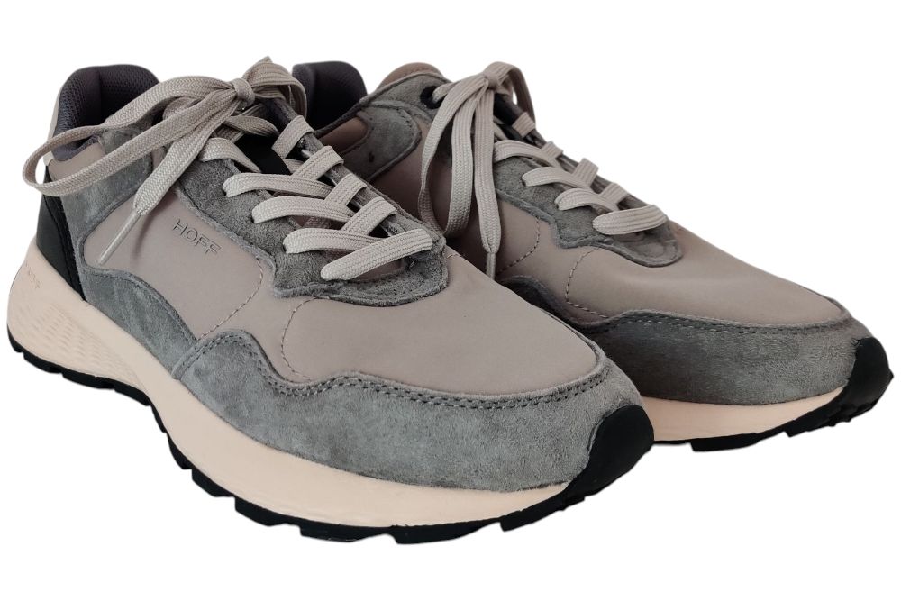 Dames sneaker van Hoff. Sportieve sneaker in een combinatie van verschillende materialen. Deze sneaker heeft een memory foam voetbed. Materiaal: suede stof combi. Voering: textiel. Kleur: beige. Zool: rubber. Hakhoogte: ca 3 cm.