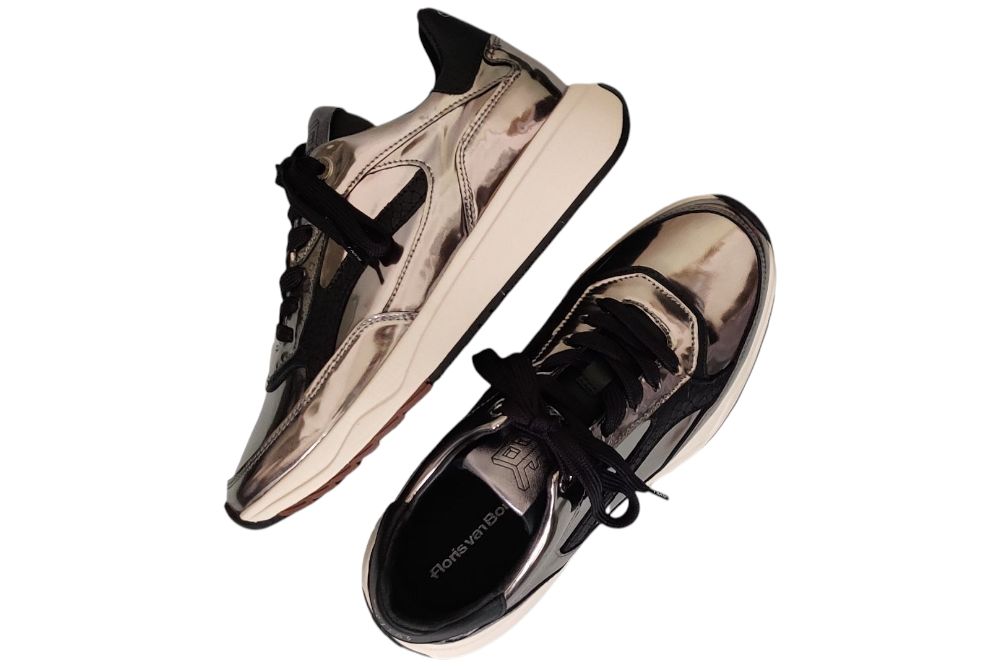 Dames sneaker van Floris van Bommel. Sneaker in verschillende materialen. Deze sneaker heeft een uitneembaar voetbed. Materiaal: Leer combi. Voering: leer. Kleur: Zilver combi. Zool: rubber. Hakhoogte: ca 3 cm. Wijdte: G.