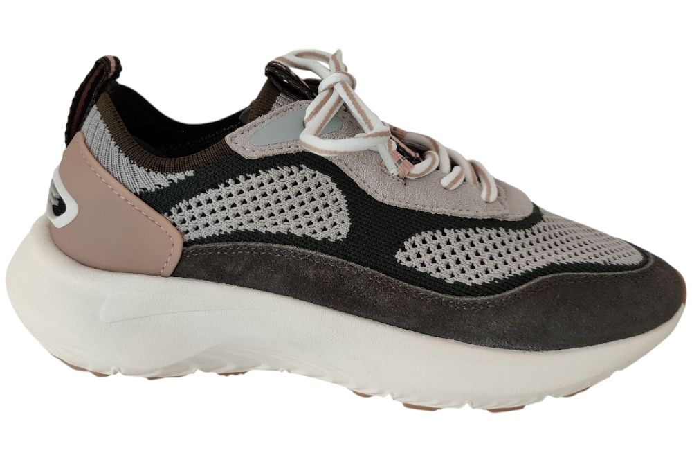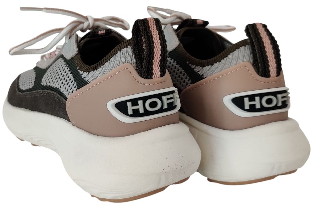 Dames sneaker van Hoff. Sportieve sneaker in een combinatie van verschillende materialen. Deze sneaker heeft een memory foam voetbed. Materiaal: suede stof combi. Voering: textiel. Kleur: kaki. Zool: rubber. Hakhoogte: ca 3 cm.