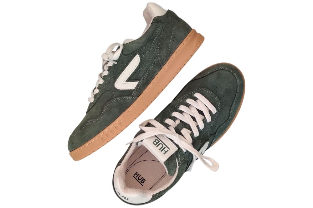 Heren sneaker van Hub. Sneaker in het groen combi. Deze sneaker heeft een uitneembaar voetbed. Materiaal: suede . Voering: stof. Kleur: groen combi. Zool: rubber. Hakhoogte: ca 3 cm.