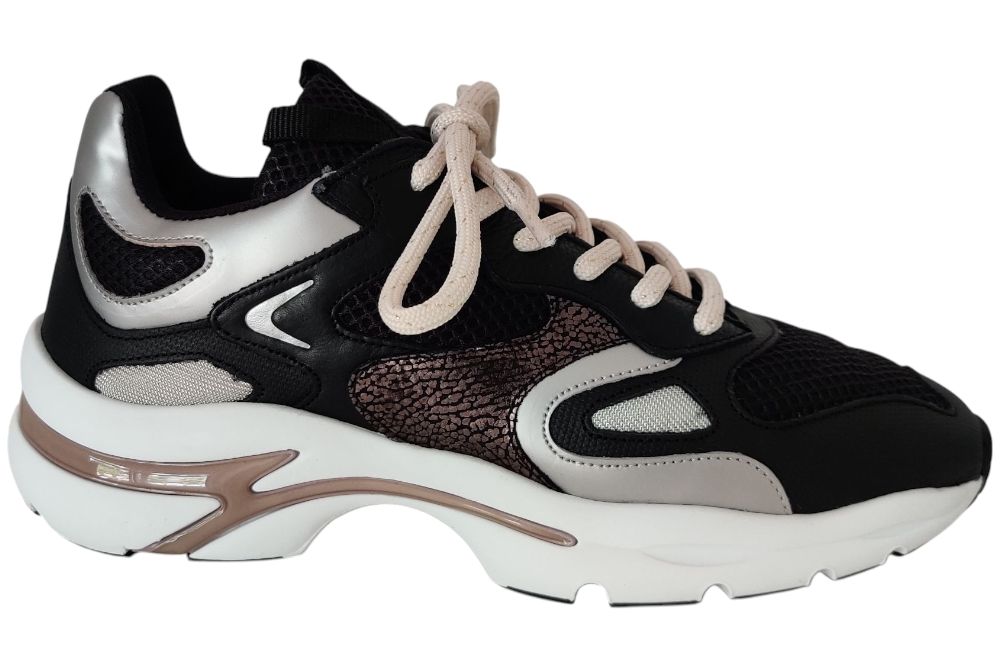 Dames sneaker van Via Vai. Sneaker in verschillende materialen en kleuren. Deze sneaker heeft een uitneembaar voetbed. Materiaal: leer combi. Voering: stof leer. Kleur: zwart grijs combi. Zool: rubber. Hakhoogte: ca 3 cm.
