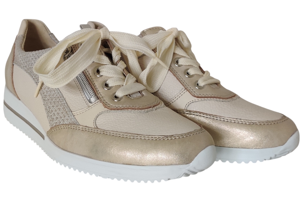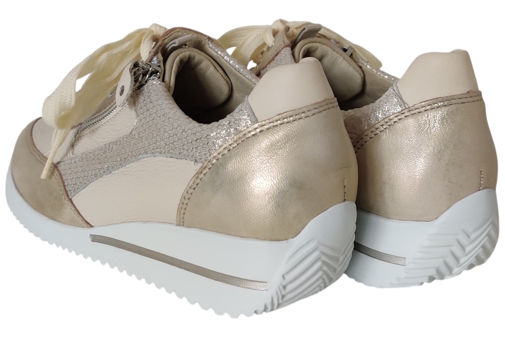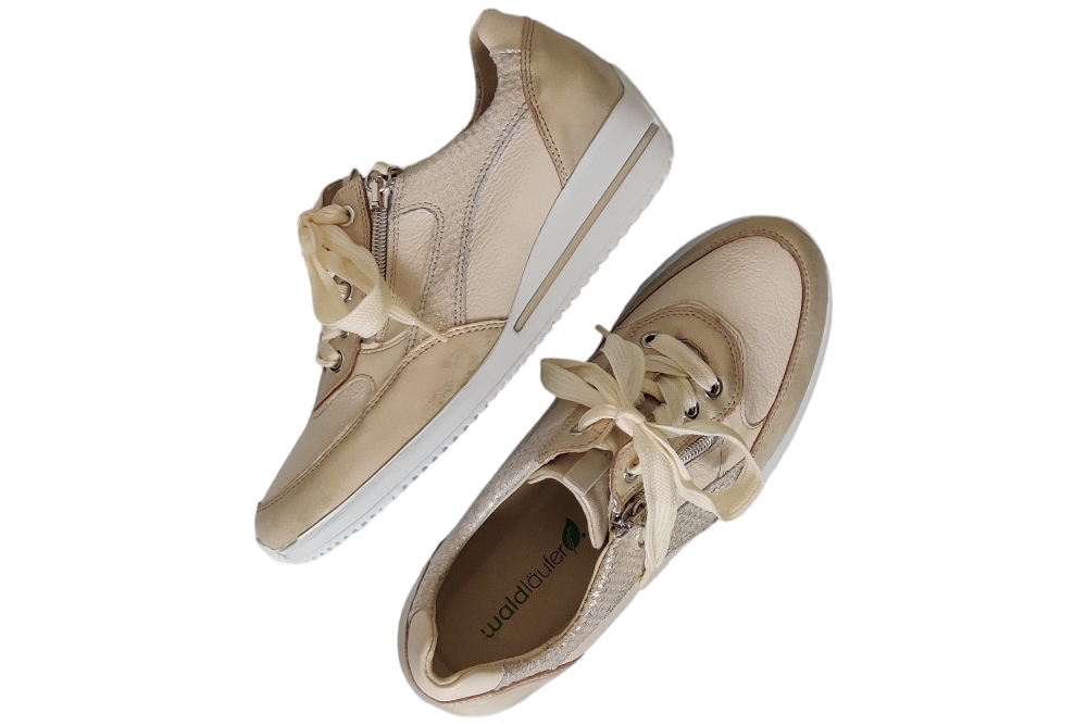 Dames sneaker van Waldlaufer. Stijlvolle sneaker in een combinatie Leer. Materiaal: leer . Voering: leer. Kleur: goud combi.Heeft een losse binnenzool. Zool: rubber.