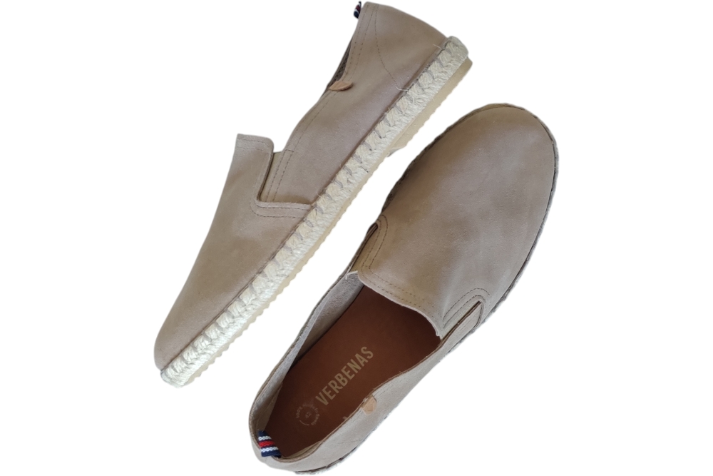 Instapper van Verbenas. Soepele instapper in espedrile stijl op zacht voetbed. Matriaal suede.Kleurt beige. Voering leer. Zool rubber ca 2 cm.