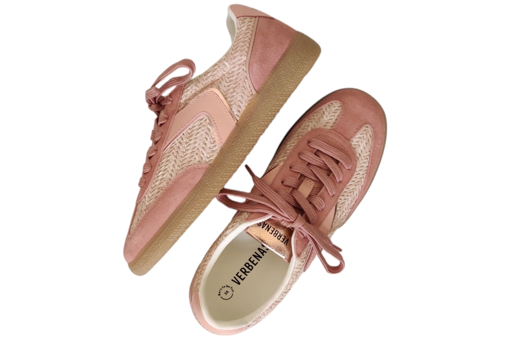 Sneaker van Verbenas. Hippe sneaker in leuke combinatie van matriale. Matriaal suede stof combi. Voering stof Kleur roze.Losse binnenzool. Zool rubber ca 1 cm.
