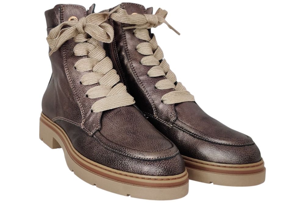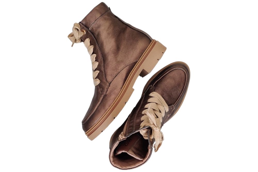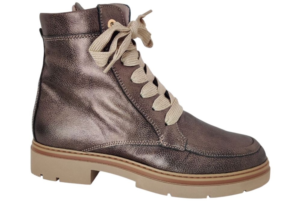 Dames hoge veterschoen van DL Sport. Casual hoge veterschoen met rits in brons leer. Deze veterschoen heeft een uitneembaar voetbed. Materiaal: leer. Voering: leer. Kleur: brons. Zool: rubber. Hakhoogte: ca 3 cm