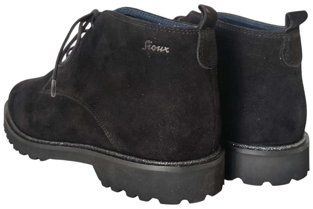 Dames veterboot van Sioux..Veterboot in het suede . Deze veterboot heeft een uitneembaar voetbed. Materiaal:suede. Voering: leer. Kleur: zwart. Zool: rubber. Hakhoogte: ca 2 cm.