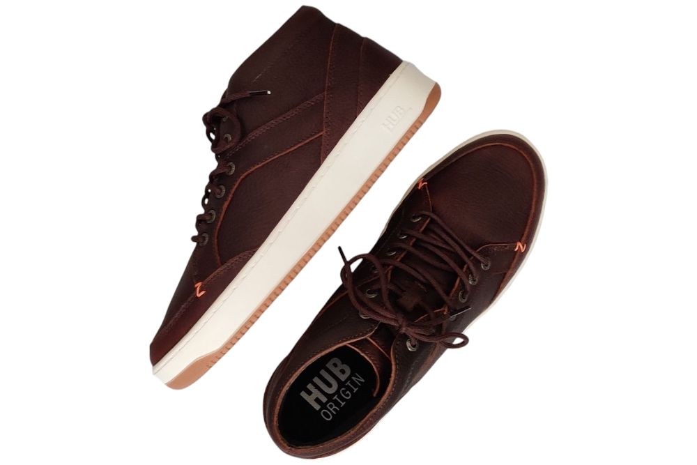 Heren veterboot van Hub. Mooie basic casual enkelboot. Casual en stijlvol. Materiaal: leer. Voering:stof . Kleur: cognac. Zool: rubber.