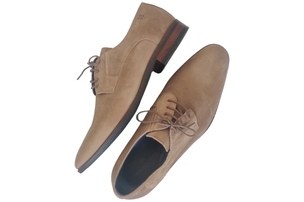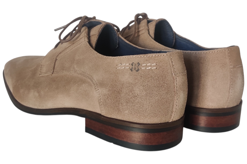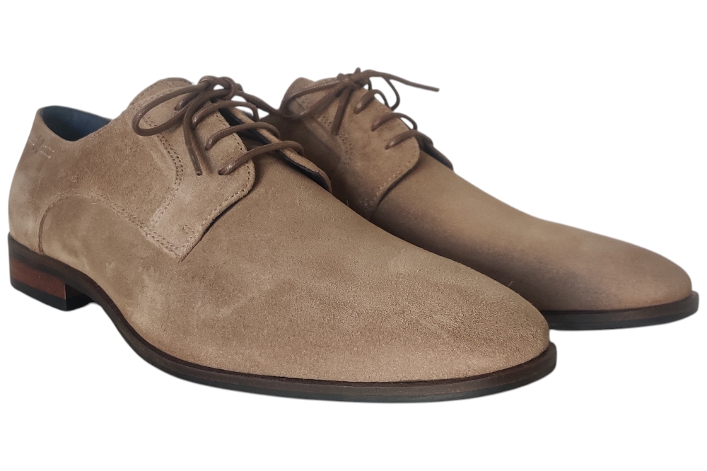 Veterschoen van Berkelmans.Suede veterschoen met losse binnenzool.Kleur beige.Matriaal suede.Voering leer.Zool rubber