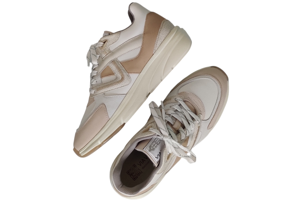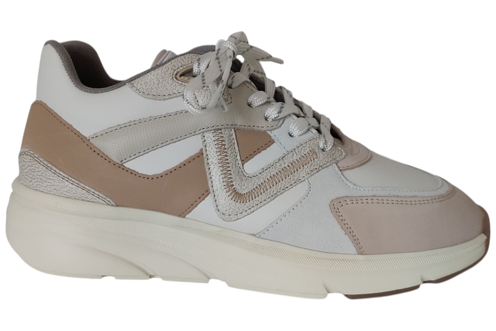 Dames sneaker van Via Vai. Basic in verschillende materialen en kleuren. Deze sneaker heeft een uitneembaar voetbed. Materiaal: leer met suede. Voering:textiel. Kleur: beige combi. Zool: rubber. Hakhoogte: ca 3 cm.