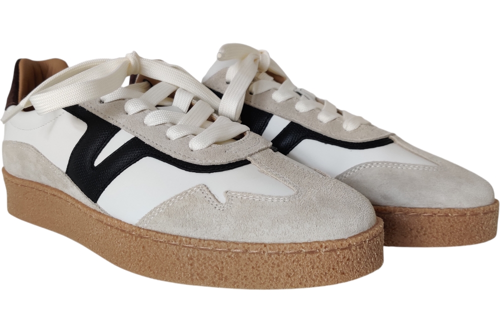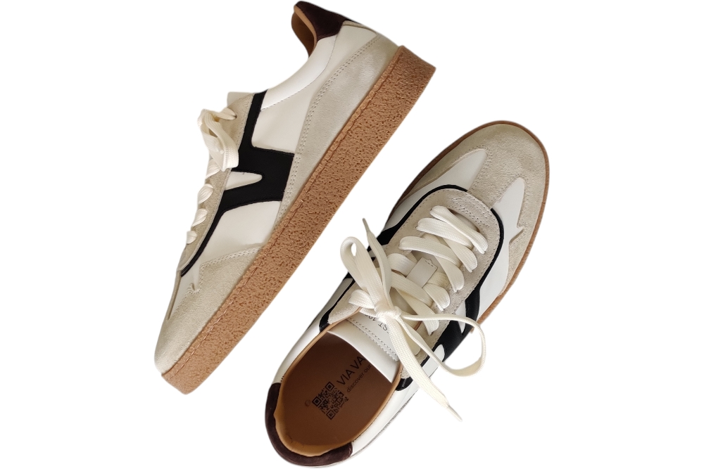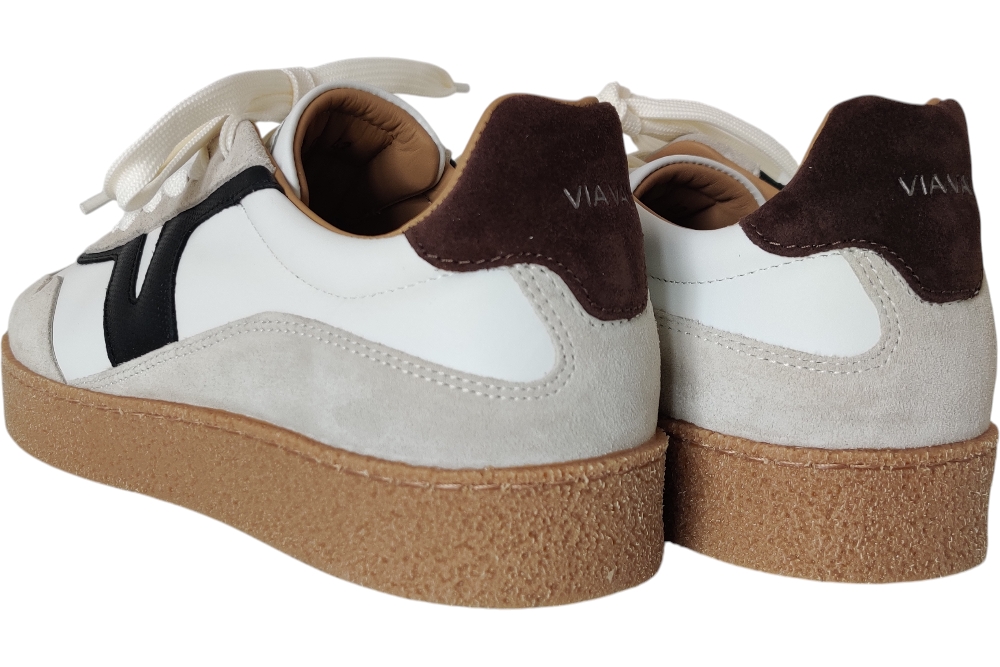 Sneaker van Via Vai. Sneaker op een caramel kleurige zool. Kleur beige zwart.Matriaal leer .Voering eer.Deze sneaker heeft een losse binnenzool. Zool rubber ca 3 cm.
