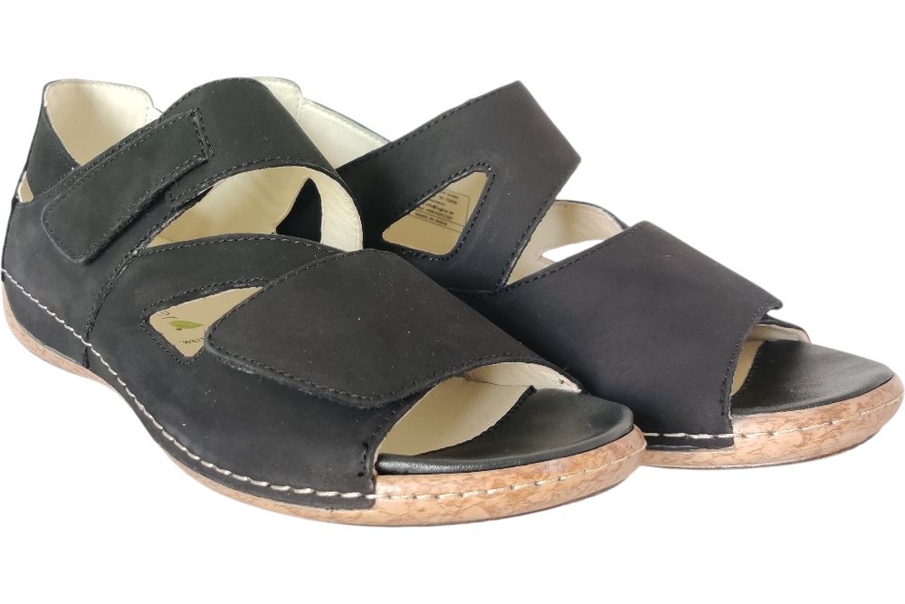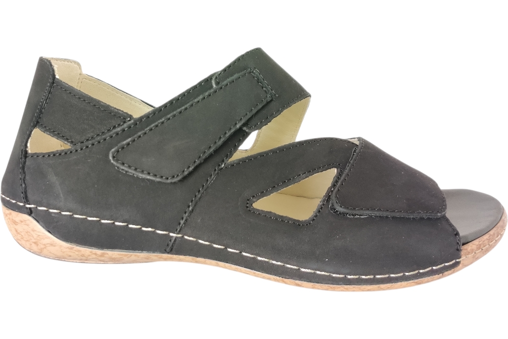 Sandaal van Waldlaufer. Sandaal met een losse binnenzool op ern H weidte metr gesloten hiel..Matriaal nubuck.Kleur zwart..Zool rubber ca 2 cm