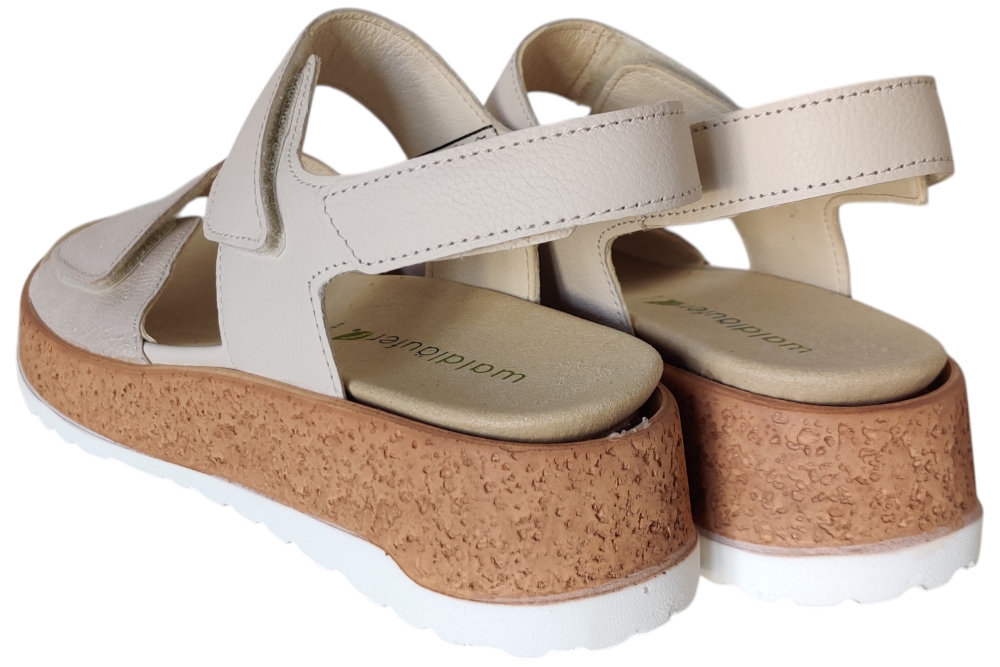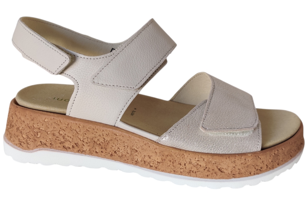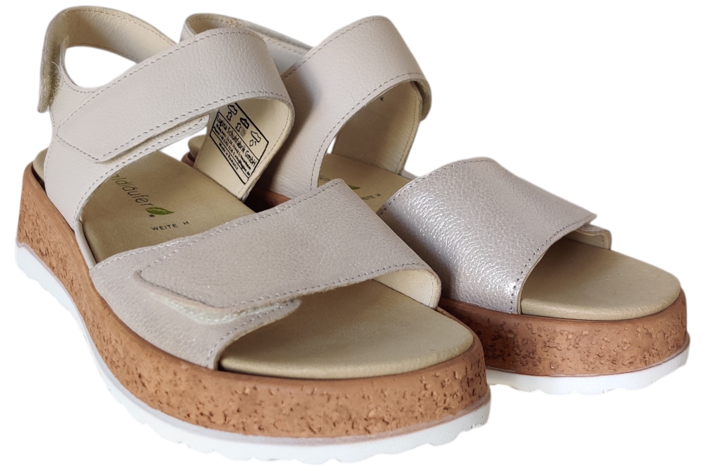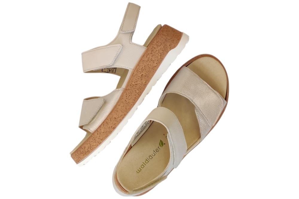 Sandalen van Waldlaufer. Sandaal met een losse binnenzool op een H weidte.Matriaal leer combi.Kleur beige zilver..Zool rubber ca 3 cm