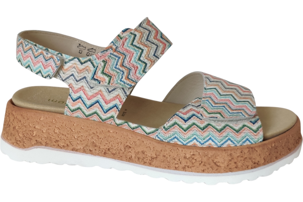 Sandalen van Waldlaufer. Sandaal met een losse binnenzool op eren h weidte.Matriaal leer combi.Kleur multi color.Zool rubber ca 3 cm