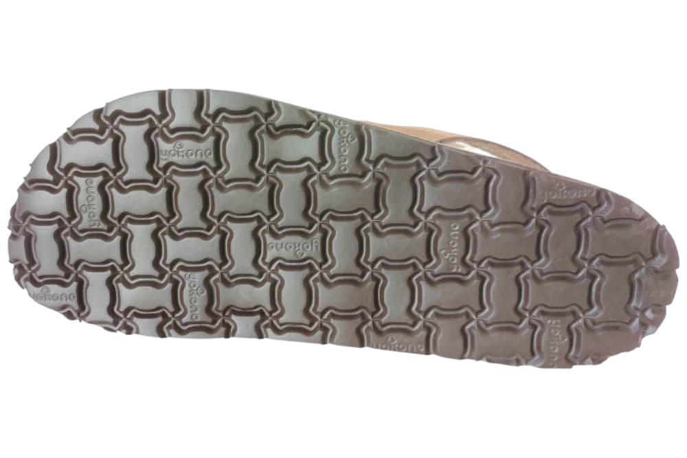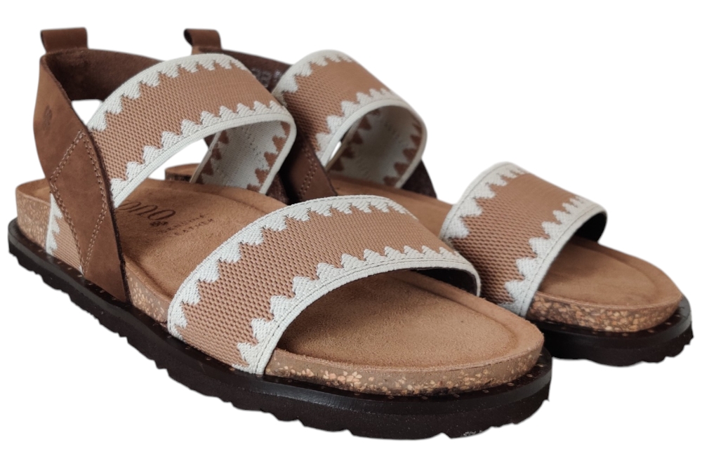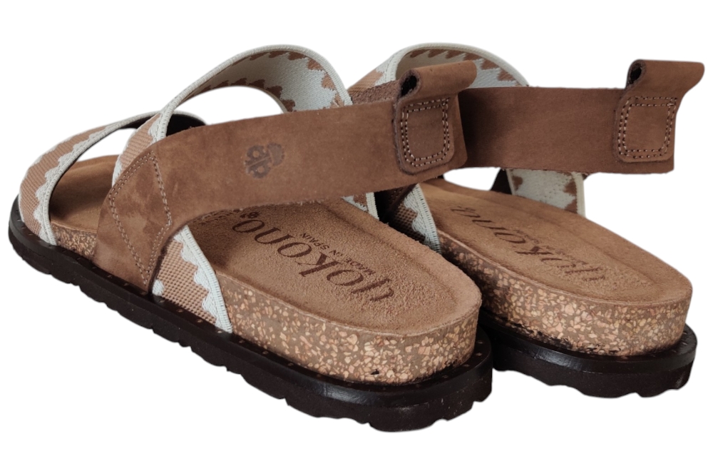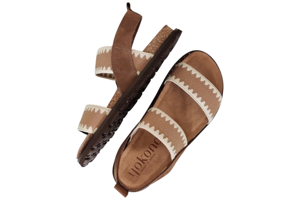 Sandaal van Yokono. Stoere sandaal met zachte voetbed en een elastische wreefband.Matriaal leer combi.Voering leer. Kleur bruin. Loopzool rubber ca 2 cm.