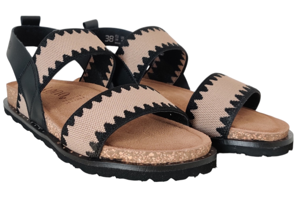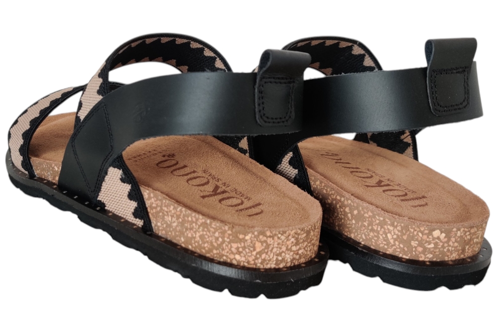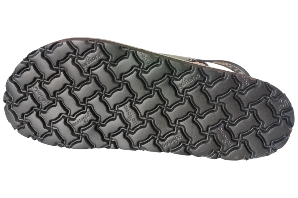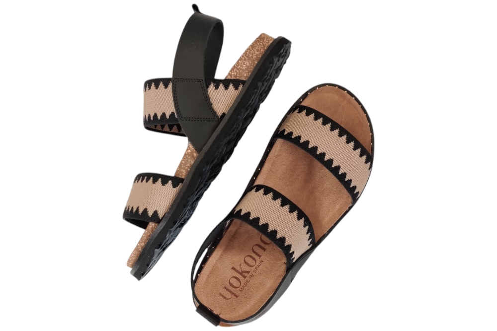 Sandaal van Yokono. Stoere sandaal met zachte voetbed en een elastische wreefband.Matriaal leer combi.Voering leer. Kleur zwart. Loopzool rubber ca 2 cm.